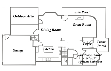 The wrap around porch opens onto a great room with hardwood floors, a gas fireplace and beautiful natural light.